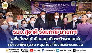 รมว.สุชาติ ร่วมคณะนายกฯ ลงพื้นที่ราชบุรี เยี่ยมกลุ่มวิสาหกิจผ้าทอคูบัว สร้างอาชีพชุมชน หนุนท่องเที่ยวเชิงวัฒนธรรม