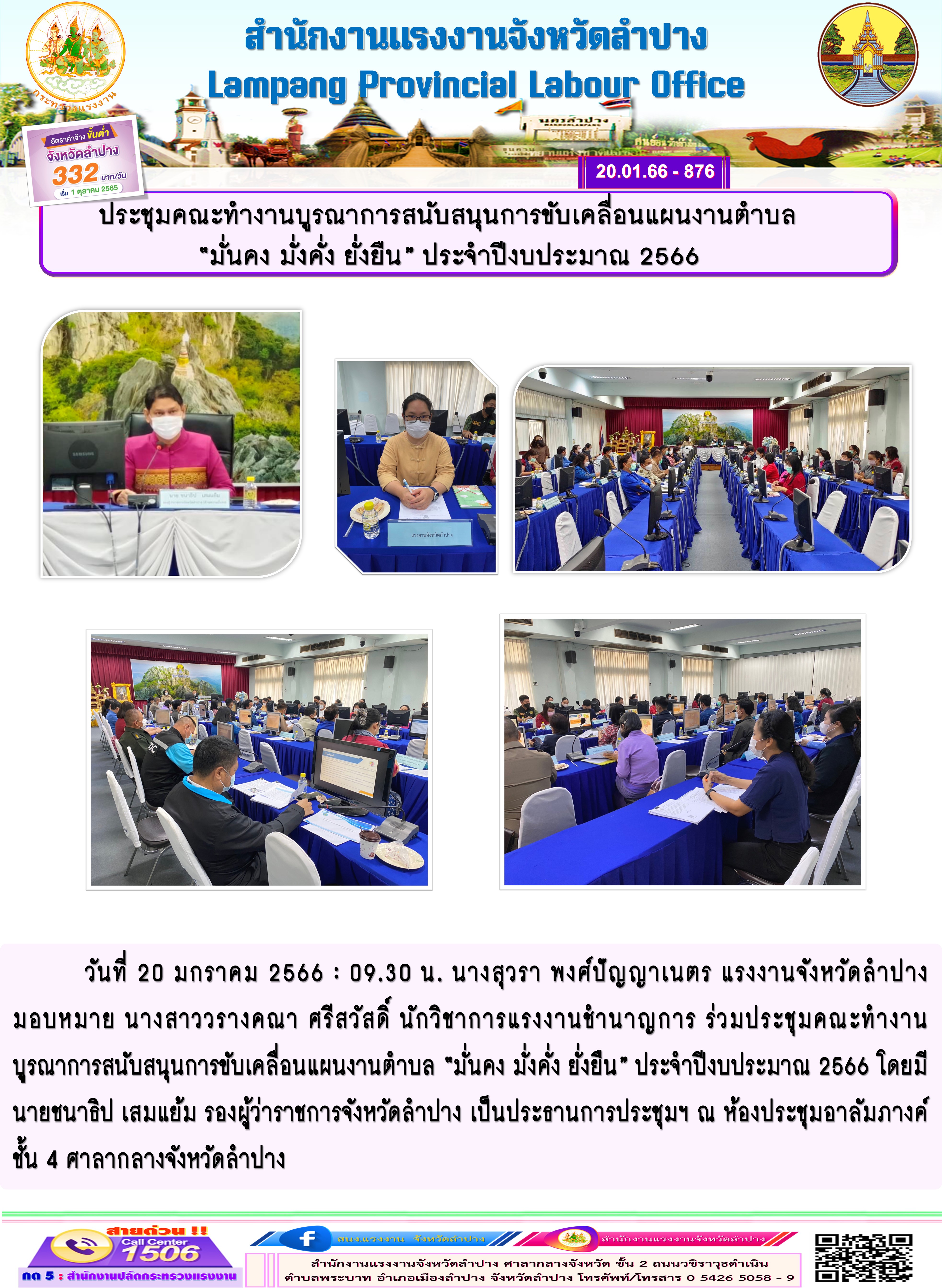 สรจ.ลำปาง ร่วมประชุมคณะทำงาน บูรณาการสนับสนุนการขับเคลื่อนแผงงานตำบล “มั่นคง มั่งคั่ง ยั่งยืน” ประจำปีงบประมาณ 2566