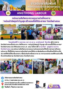 หน่วยงานสังกัดกระทรวงแรงงานร่วมโครงการ “หน่วยบำบัดทุกข์ บำรุงสุข สร้างรอยยิ้มให้ประชาชน” จังหวัดอ่างทอง