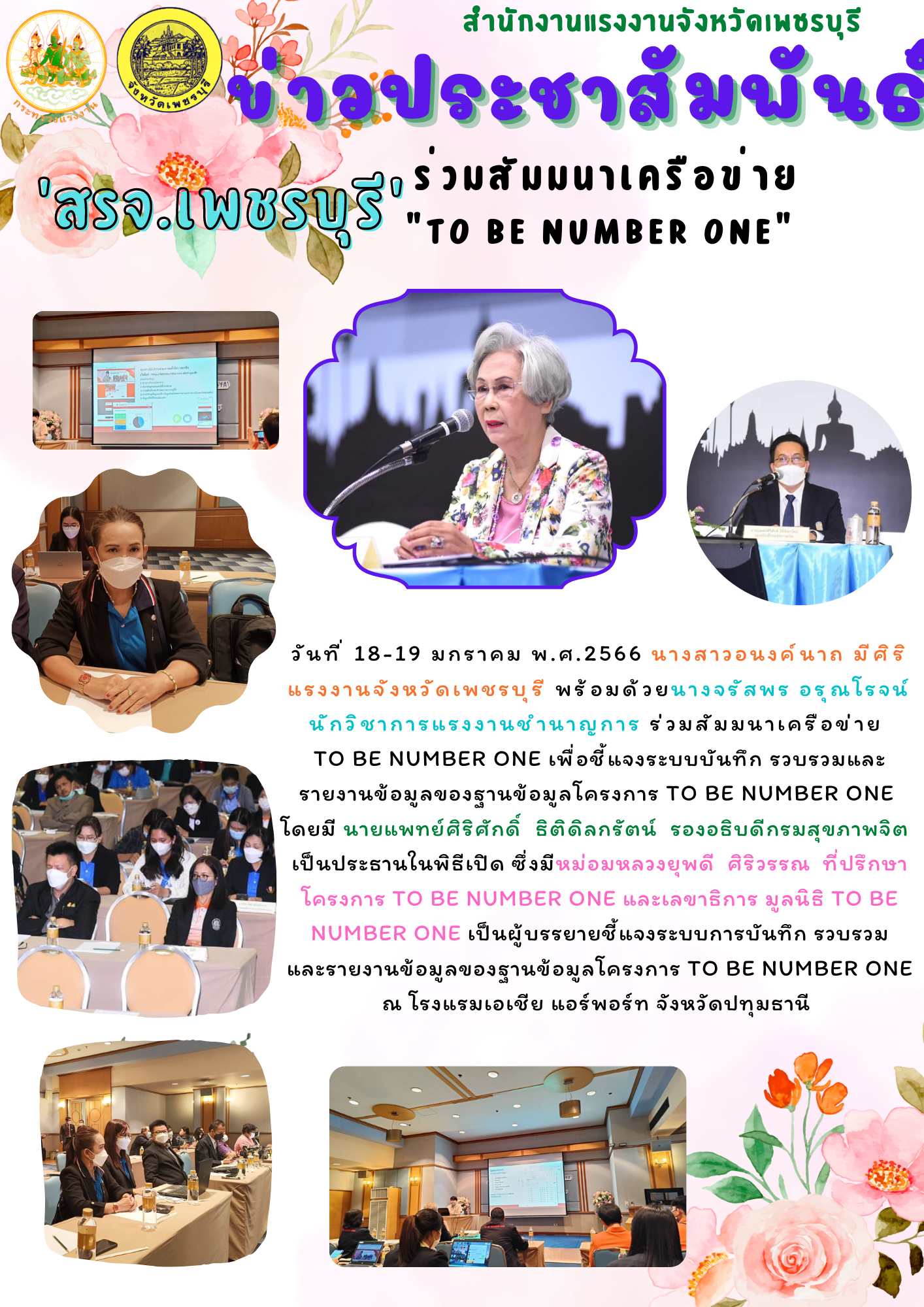 สำนักงานแรงงานจังหวัดพระนครศรีอยุธยา เข้าร่วมสัมมนาเครือข่าย TO BE NUMBER ONE เพื่อรับฟังคำชี้แจงระบบการบันทึก รวบรวม และรายงานข้อมูลของฐานข้อมูลโครงการ TO BE NUMBER ONE
