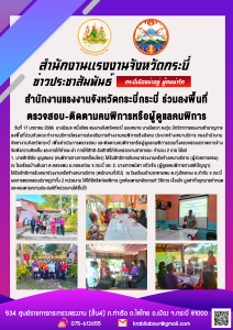 สำนักงานแรงงานจังหวัดกระบี่ ลงพื้นที่ตรวจ สถานประกอบกิจการแบบบูรณาการเพื่อป้องกันและแก้ไข ปัญหาการค้ามนุษย์ด้านแรงาน