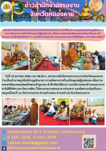 หน่วยงานสังกัดกระทรวงแรงงานจังหวัดหนองคาย ร่วมเป็นเจ้าภาพอุปภัมภ์ทำบุญตักบาตร ถวายภัตตาหารเช้าแก่ภิกษุสงฆ์ผู้อุปสมบท เพื่อถวายพระพรชัยมงคลแด่สมเด็จพระเจ้าลูกเธอ เจ้าฟ้าพัชรกิติยาภา นเรนทิราเทพยวดี กรมหลวงราชสาริณีสิริพัชร มหาวัชรราชธิดา