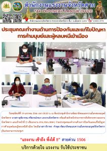 หน่วยงานในสังกัดกระทรวงแรงงานจังหวัดตาก ร่วมประชุมคณะทำงานด้านการป้องกันและแก้ไขปัญหาการค้ามนุษย์และผู้หลบหนีเข้าเมือง
