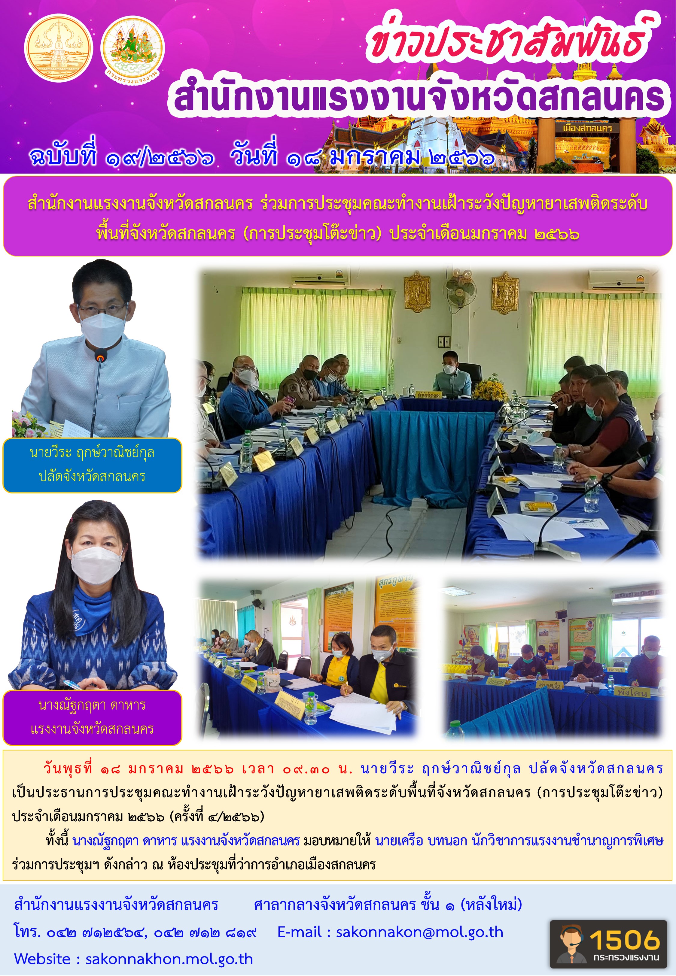 สำนักงานแรงงานจังหวัดสกลนคร ร่วมการประชุมคณะทำงานเฝ้าระวังปัญหายาเสพติดระดับพื้นที่จังหวัดสกลนคร (การประชุมโต๊ะข่าว) ประจำเดือนมกราคม 2566