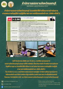 สำนักงานแรงงานจังหวัดนนทบุรี ร่วมคลินิกให้คำปรึกษาการดำเนินการ ตามพระราชบัญญัติการปฏิบัติราชการทางอิเล็กทรอนิกส์ พ.ศ. 2565 ครั้งที่ 2