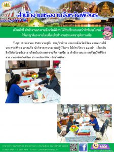 เจ้าหน้าที่ สำนักงานแรงงานจังหวัดพิจิตร ให้คำปรึกษาแนะนำสิทธิประโยชน์ ให้แก่ญาติแรงงานไทยที่เคยไปทำงานประเทศซาอุดีอาระเบีย
