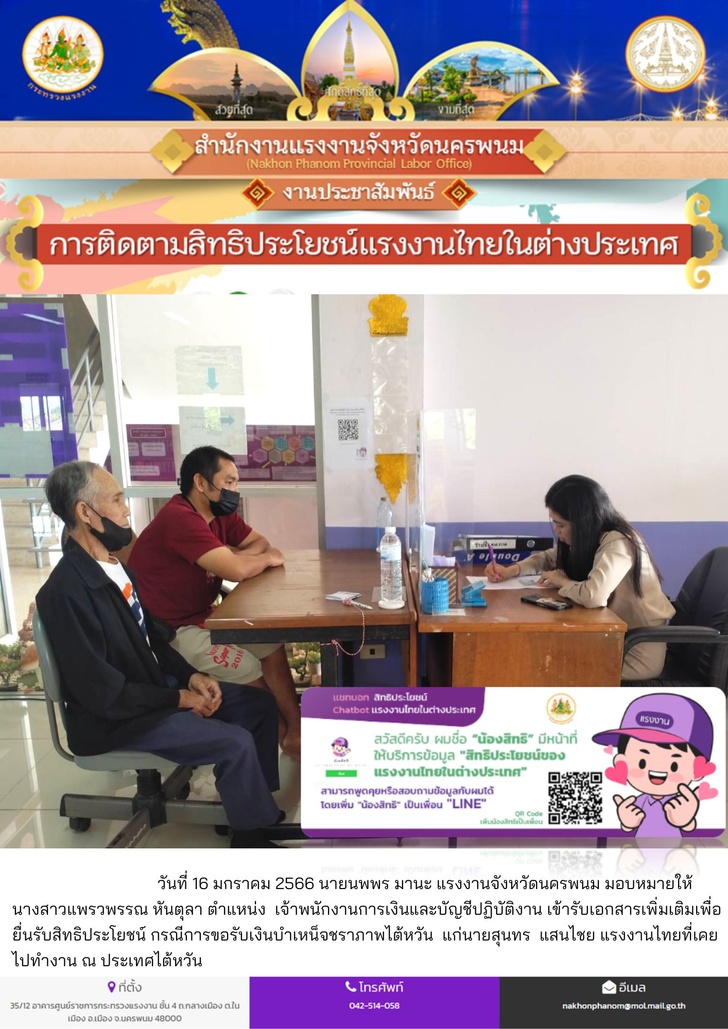 สรจ.นครพนม ติดตามสิทธิประโยชน์แรงงานไทยในต่างประเทศ