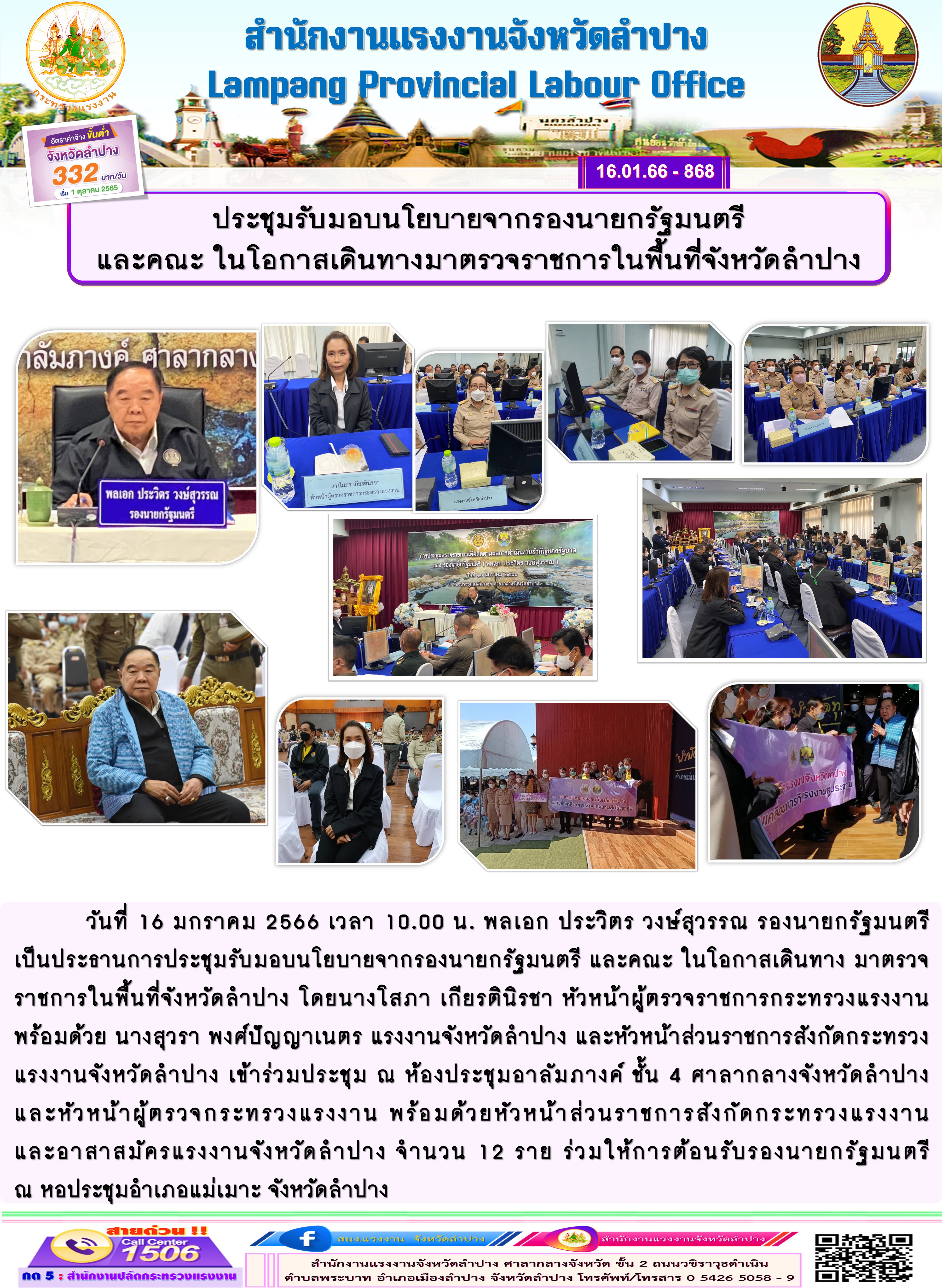 ประชุมรับมอบนโยบายจากรองนายกรัฐมนตรี และคณะ ในโอกาสเดินทาง มาตรวจราชการในพื้นที่จังหวัดลำปาง