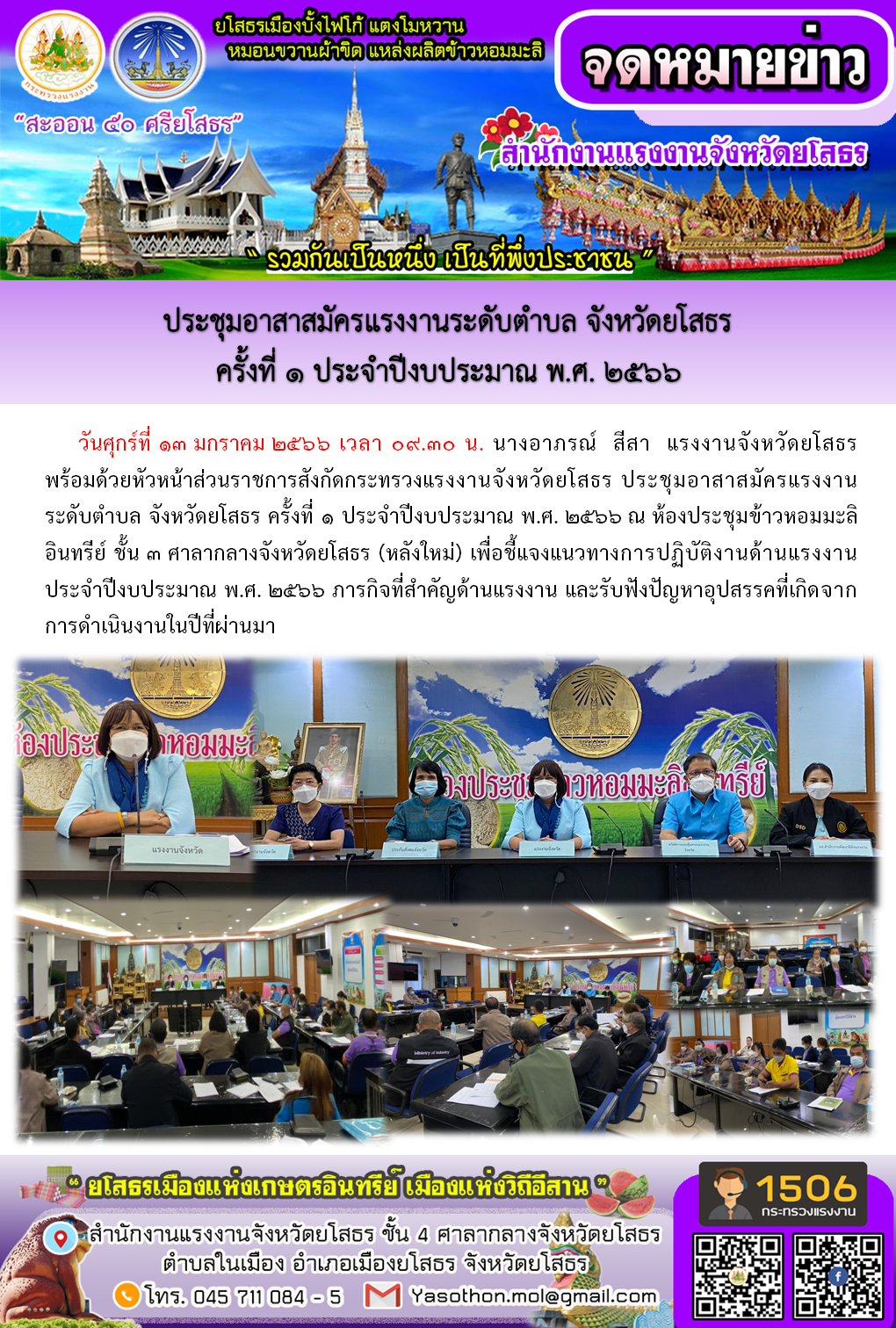 สรจ.ยโสธร ประชุมอาสาสมัครแรงงานระดับตำบล จังหวัดยโสธร ครั้งที่ 1 ประจำปีงบประมาณ พ.ศ. 2566