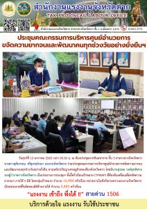 แรงงานจังหวัดตาก ร่วมประชุมคณะกรรมการบริหารศูนย์อำนวยการขจัดความยากจนและพัฒนาคนทุกช่วงวัยอย่างยั่งยืน ตามหลักปรัชญาเศรษฐกิจพอเพียงจังหวัดตาก