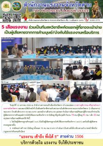 5 เสือแรงงาน ร่วมเป็นทีมสหวิชาชีพคัดแยกผู้ที่อาจจะเข้าข่ายเป็นผู้เสียหายจากการค้ามนุษย์/บังคับใช้แรงงานหรือบริการ