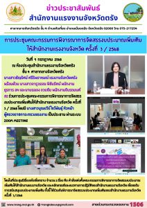 ปลัดกระทรวงแรงงาน มอบ ผู้ตรวจฯ ตรวจติดตามและประเมินผลการปฏิบัติงาน ฯ รอบที่ 3 จ.ปทุมธานี