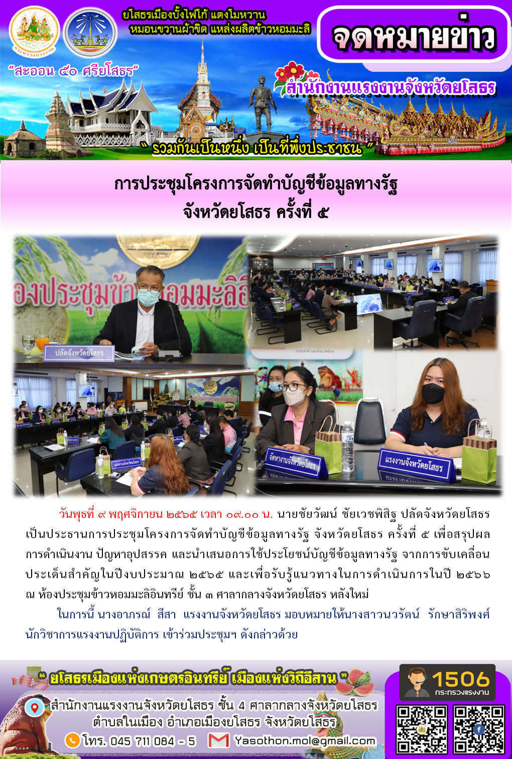 สรจ.ยส.เข้าร่วมการประชุมโครงการจัดทำบัญชีข้อมูลทางรัฐ จังหวัดยโสธร ครั้งที่ 5