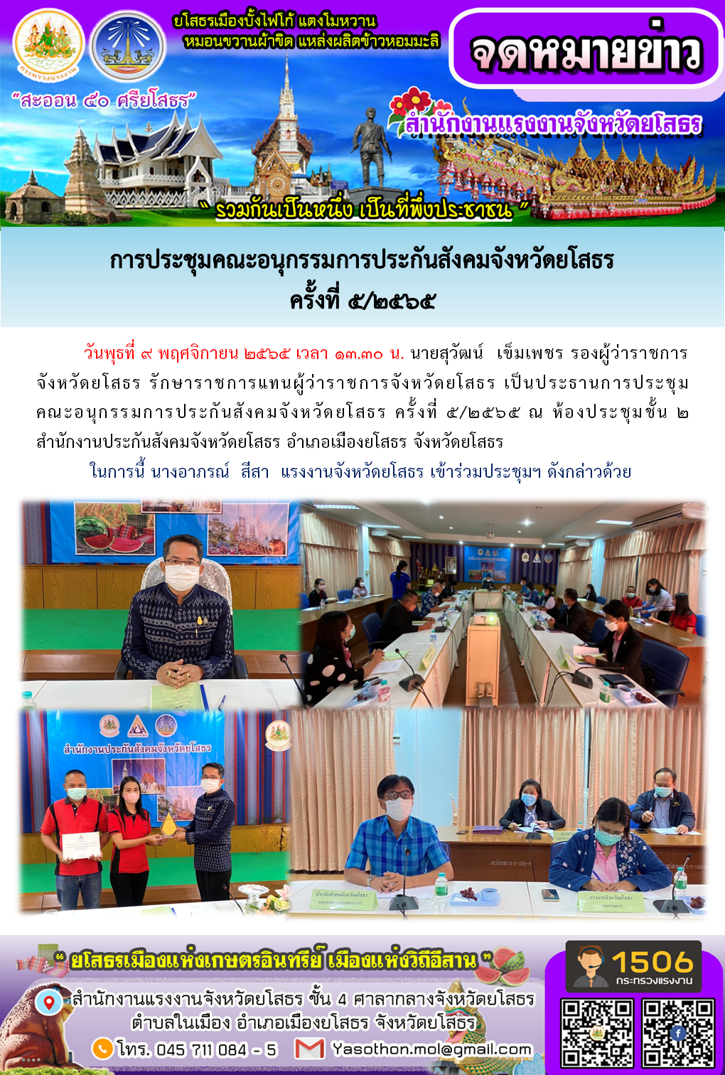 สรจ.ยส.เข้าร่วมการประชุมคณะอนุกรรมการประกันสังคมจังหวัดยโสธร ครั้งที่ 5/2565