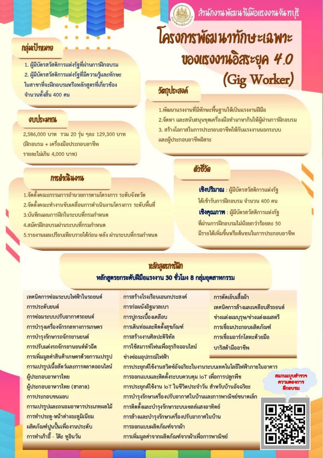 โครงการพัฒนาทักษะเฉพาะของแรงงานอิสระยุค 4.0 (Gig Worker)