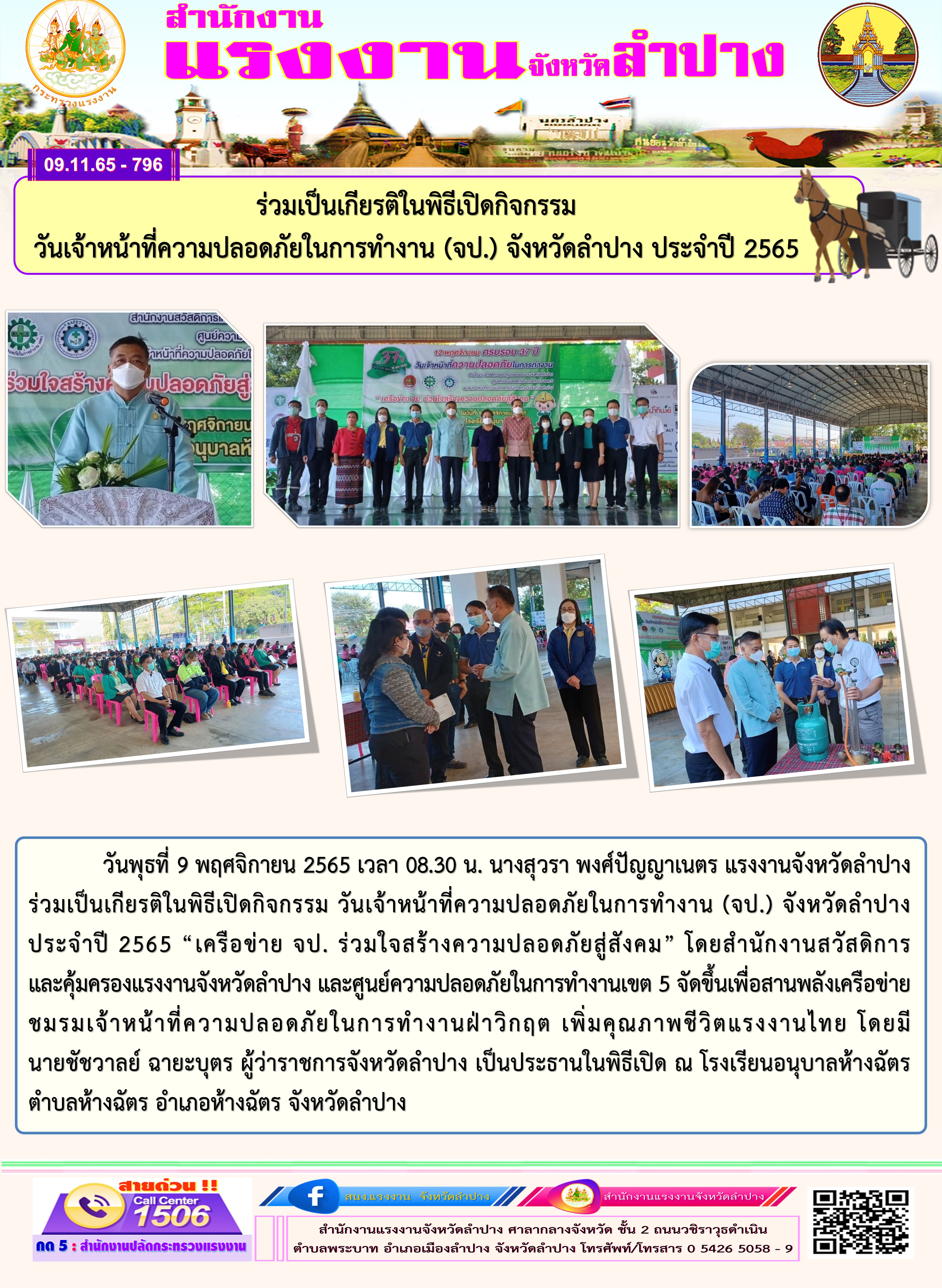 ร่วมเป็นเกียรติในพิธีเปิดกิจกรรม วันเจ้าหน้าที่ความปลอดภัยในการทำงาน (จป.) จังหวัดลำปาง ประจำปี 2565