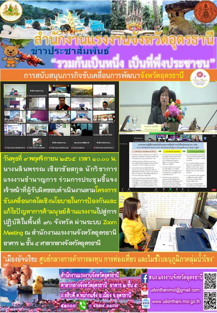ประชุมชี้แจงเจ้าหน้าที่ผู้รับผิดชอบการดำเนินงานตามโครงการขับ เคลื่อนกลไกเชิงนโยบายในการป้องกัน และแก้ไขปัญหาการค้า มนุษย์ด้านแรงงานไปสู่การปฏิบัติในพื้นที่ ทั้ง 76 จังหวัด
