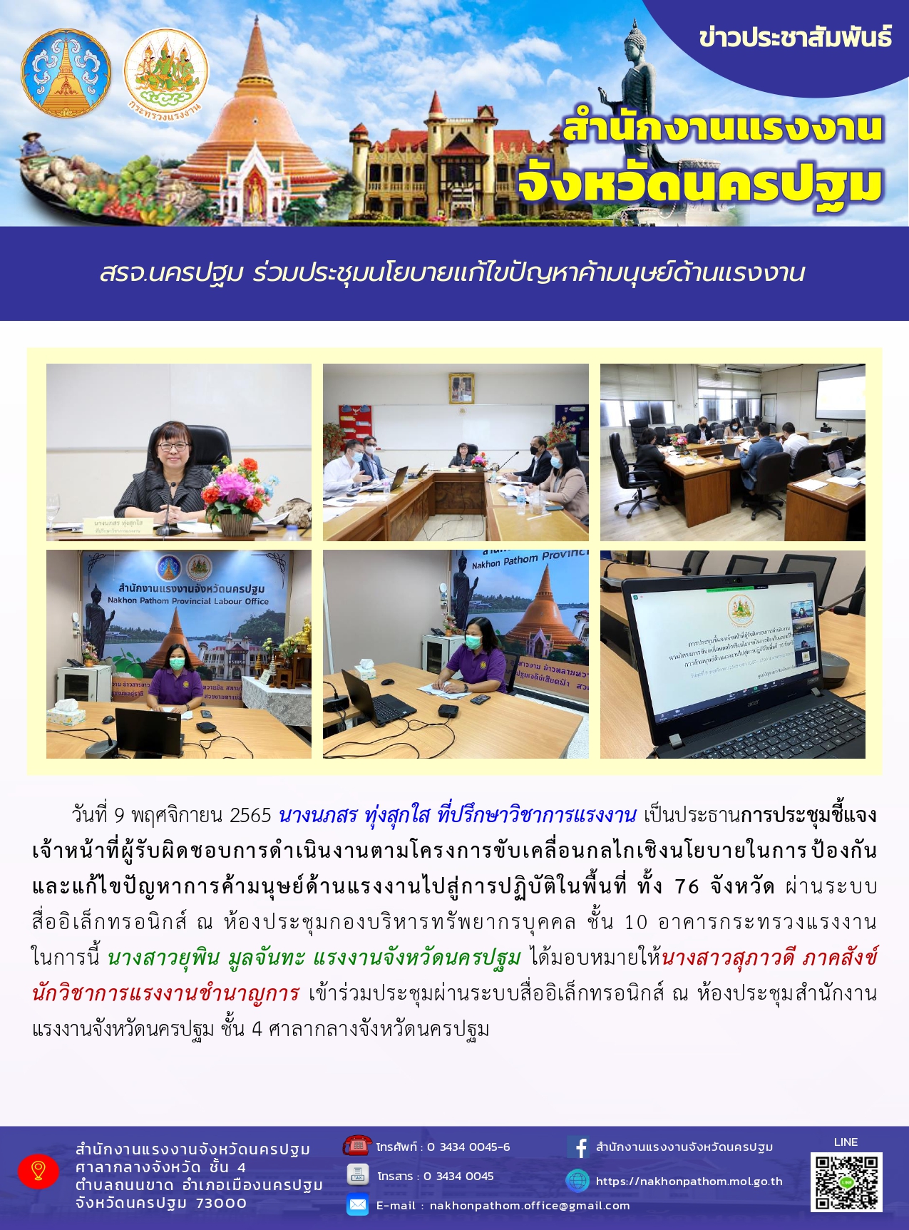 สรจ.นครปฐม ร่วมประชุมนโยบายแก้ไขปัญหาค้ามนุษย์ด้านแรงงาน