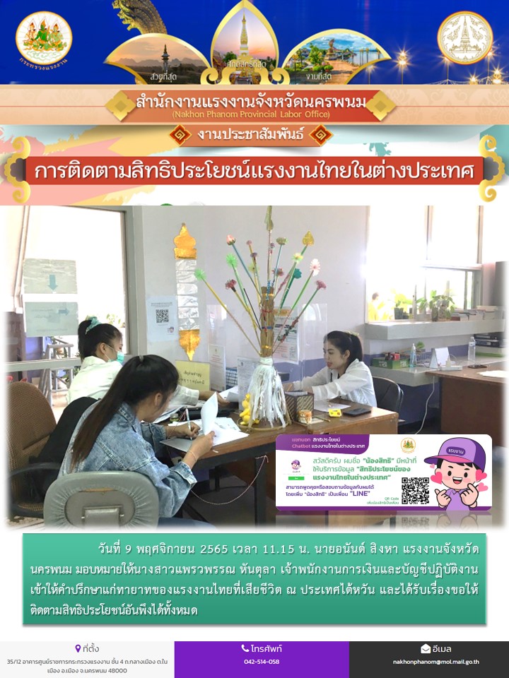 สรจ.นครพนม ติดตามสิทธิประโยชน์แรงงานไทยในต่างประเทศ (กรณีเสียชีวิต)