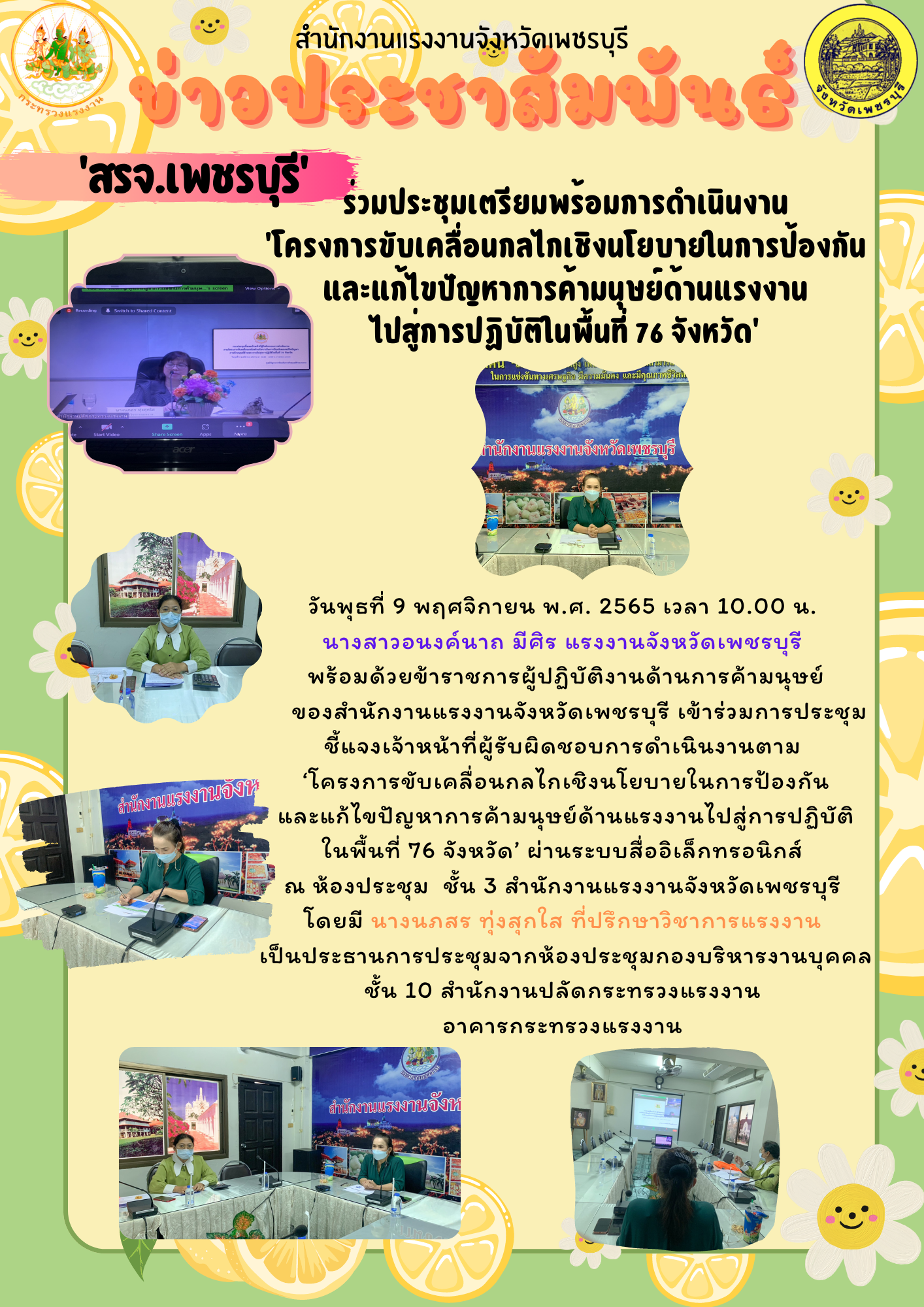 ‘สรจ.เพชรบุรี’ ร่วมประชุมเตรียมพร้อมการดำเนินงาน ‘โครงการขับเคลื่อนกลไกเชิงนโยบายในการป้องกันและแก้ไขปัญหาการค้ามนุษย์ด้านแรงงาน ไปสู่การปฏิบัติในพื้นที่ 76 จังหวัด’