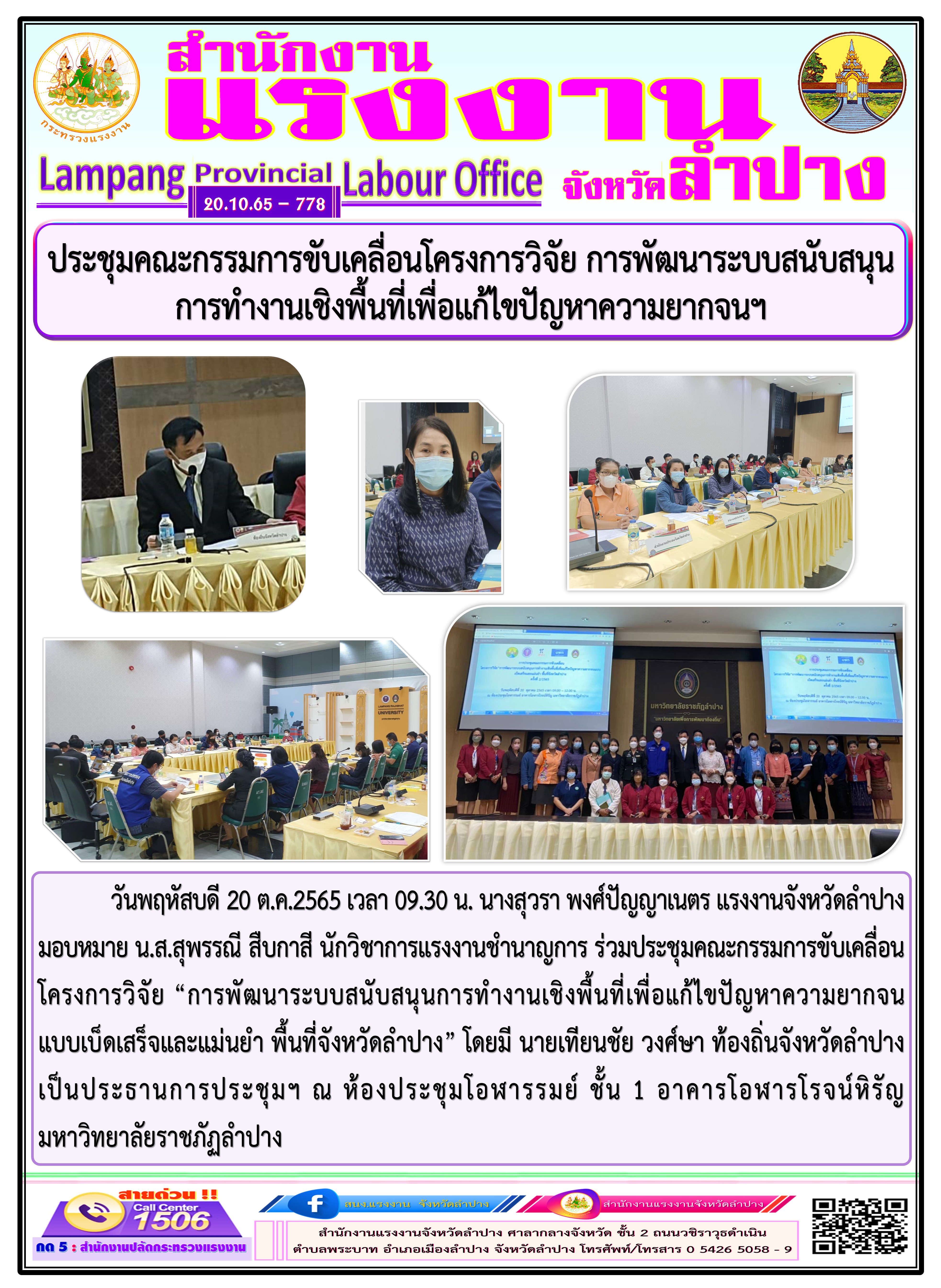 ประชุมคณะกรรมการขับเคลื่อนโครงการวิจัย การพัฒนาระบบสนับสนุน การทำงานเชิงพื้นที่เพื่อแก้ไขปัญหาความยากจนฯ