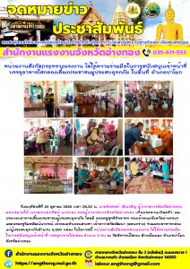 หน่วยงานสังกัดกระทรวงแรงงาน ได้ให้ความร่วมมือในการสนับสนุนเจ้าหน้าที่ บรรจุอาหารใส่กล่องเลี้ยงประชาชนผู้ประสบอุทกภัย ในพื้นที่ อำเภอป่าโมก