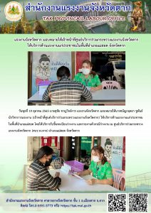 แรงงานจังหวัดตาก มอบหมายให้เจ้าหน้าที่ศูนย์บริการร่วมกระทรวงแรงงานจังหวัดตาก ให้บริการด้านแรงงานแก่ประชาชนในพื้นที่อำเภอแม่สอด จังหวัดตาก