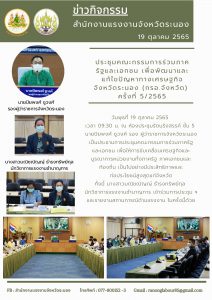 ประชุมคณะกรรมการร่วมภาค รัฐและเอกชน เพื่อพัฒนาและ แก้ไขปัญหาทางเศรษฐกิจ จังหวัดระนอง (กรอ.จังหวัด) ครั้งที่ 5/2565