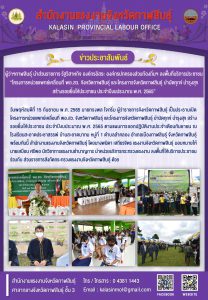 ส่วนราชการสังกัดกระทรวงแรงงานจังหวัดกาฬสินธุ์ ร่วมลงพื้นที่บริการประชาชน “โครงการหน่วยแพทย์เคลื่อนที่ พอ.สว. จังหวัดกาฬสินธุ์ และโครงการจังหวัดกาฬสินธุ์ บำบัดทุกข์ บำรุงสุข สร้างรอยยิ้มให้ประชาชน ประจำปีงบประมาณ พ.ศ. 2565”