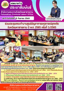 แรงงานจังหวัดระยอง ร่วมประชุมคณะอนุกรรมการศูนย์ปฏิบัติการป้องกันและปราบปรามการค้ามนุษย์จังหวัดระยอง ครั้งที่ 1/2565