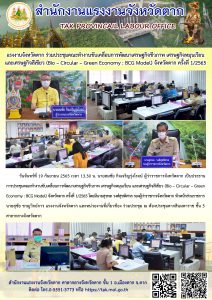 แรงงานจังหวัดตาก ร่วมประชุมคณะทำงานขับเคลื่อนการพัฒนาเศรษฐกิจชีวภาพ เศรษฐกิจหมุนเวียน และเศรษฐกิจสีเขียว (Bio – Circular – Green Economy : BCG Model) จังหวัดตาก ครั้งที่ 1/2565