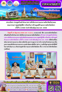 สรจ.ยโสธร ประชุมหัวหน้าส่วนราชการสังกัดกระทรวงแรงงานจังหวัดยโสธรและคณะกรรมการศูนย์ปฏิบัติการป้องกันการค้ามนุษย์ด้านแรงงานจังหวัดยโสธร ครั้งที่ 9/2568 ประจำเดือนมิถุนายน พ.ศ. 2568