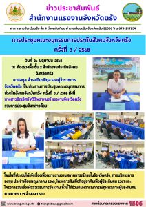 แรงงานจังหวัดตรัง ร่วมการประชุมคณะอนุกรรมการประกันสังคมจังหวัดตรัง ครั้งที่ 3/2568