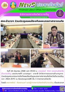 สำนักงานแรงงานจังหวัดมุกดาหาร ร่วมประชุมคณะกรรมการจัดทำแผนการป้องกันและบรรเทาสาธารณภัยจังหวัดมุกดาหาร พ.ศ. 2564 – 2570 ประจำปีงบประมาณ พ.ศ. 2568