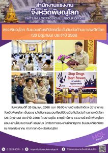 สำนักงานแรงงานจังหวัดมุกดาหาร ร่วมประกาศเจตนารมณ์เนื่องในวันต่อต้านยาเสพติดโลก (26 มิถุนายน) ประจำปี 2568