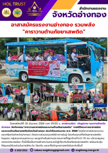 อาสาสมัครแรงงานอ่างทอง รวมพลัง “คาราวานต้านภัยยาเสพติด”