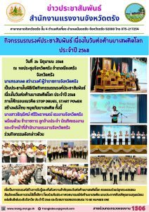 สรจ.ตรัง ร่วมกิจกรรมรณรงค์ประชาสัมพันธ์ เนื่องในวันต่อต้านยาเสพติดโลก ประจำปี 2568