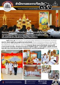 แรงงานจังหวัดตรัง ลงพื้นที่เยี่ยมเจ้าหน้าที่ในสังกัดกระทรวงแรงงานจังหวัดตรัง และอาสาสมัครแรงงานจังหวัดตรังที่ได้รับผลกระทบจากสถานการณ์อุทกภัย