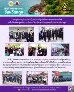 แรงงานสตูล ร่วมต้อนรับนายอนุทิน ชาญวีรกูล นายกรัฐมนตรีและรัฐมนตรีว่าการกระทรวงมหาดไทย ลงพื้นที่จังหวัดสตูลเพื่อตรวจเยี่ยมและให้กำลังใจผู้ประสบอุทกภัยในเขตอำเภอเมืองสตูล