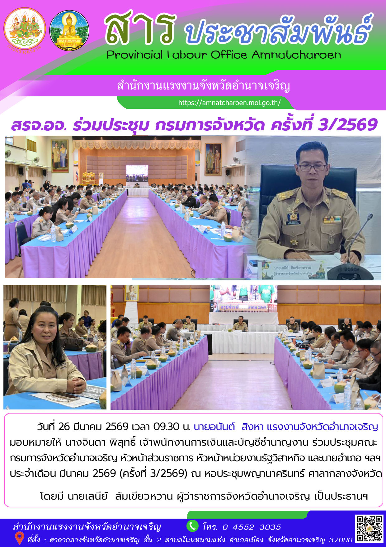 สรจ.อำนาจเจริญ ร่วมประชุมคณะกรมการจังหวัด ครั้งที่ 3/2569