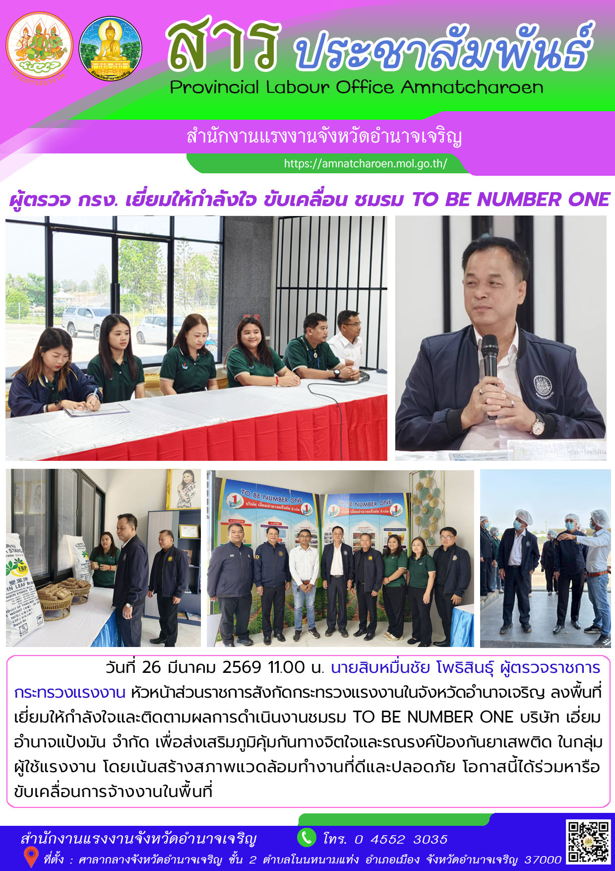 ผู้ตรวจฯ (นายสิบหมื่นชัย โพธิสินธุ์ ) เยี่ยมให้กำลังใจ ขับเคลื่อน ชมรม TO BE NUMBER ONE