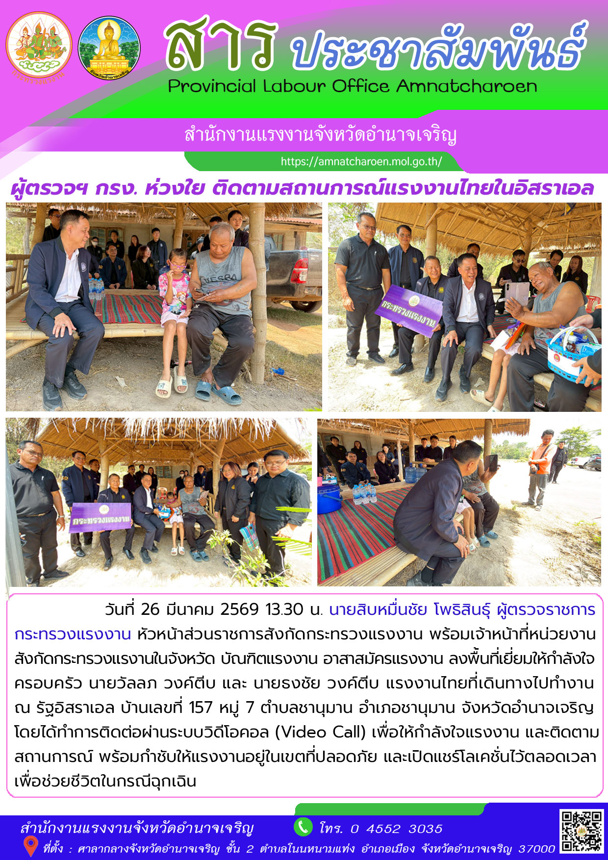 ผู้ตรวจฯ (นายสิบหมื่นชัย โพธิสินธุ์ ) ห่วงใย ติดตามสถานการณ์แรงงานไทยในอิสราเอล