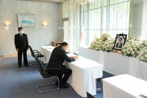 รมว.แรงงาน ลงนามในสมุดแสดงความเสียใจอดีตนายกรัฐมนตรีญี่ปุ่นถึงแก่อสัญกรรม