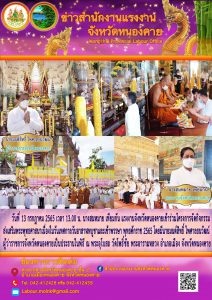 แรงงานจังหวัดหนองคายเข้าร่วมโครงการจัดกิจกรรมส่งเสริมพระพุทธศาสนาเนื่องในวันเทศกาลวันอาสาฬหบูชาและเข้าพรรษา พุทธศักราช 2565