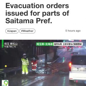 ประชาสัมพันธ์เตือนผู้ฝึกปฏิบัติงานด้านเทคนิค/แรงงานไทยในพื้นที่จังหวัดไซตามะ และพื้นที่ใกล้เคียงเฝ้าระวังสถานการณ์ฝนตกหนัก