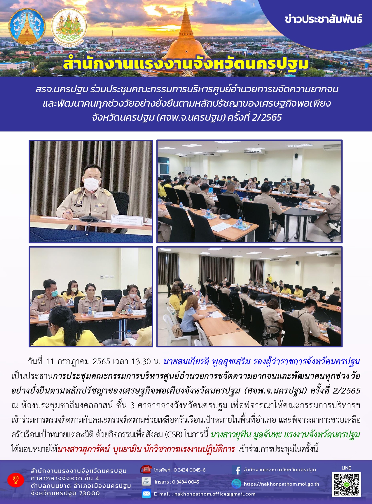 สรจ.นครปฐม ร่วมประชุมคณะกรรมการบริหารศูนย์อำนวยการขจัดความยากจนและพัฒนาคนทุกช่วงวัยอย่างยั่งยืนตามหลักปรัชญาของเศรษฐกิจพอเพียงจังหวัดนครปฐม (ศจพ.จ.นครปฐม) ครั้งที่ 2/2565