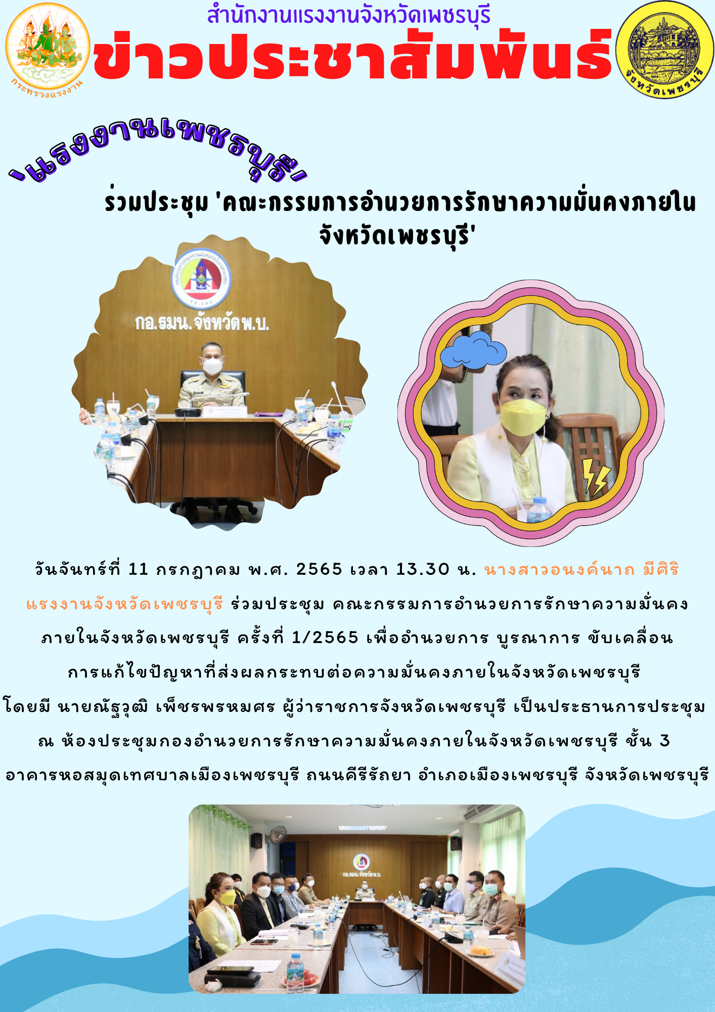 ‘แรงงานเพชรบุรี’ ร่วมประชุม ‘คณะกรรมการอำนวยการรักษาความมั่นคงภายในจังหวัดเพชรบุรี’