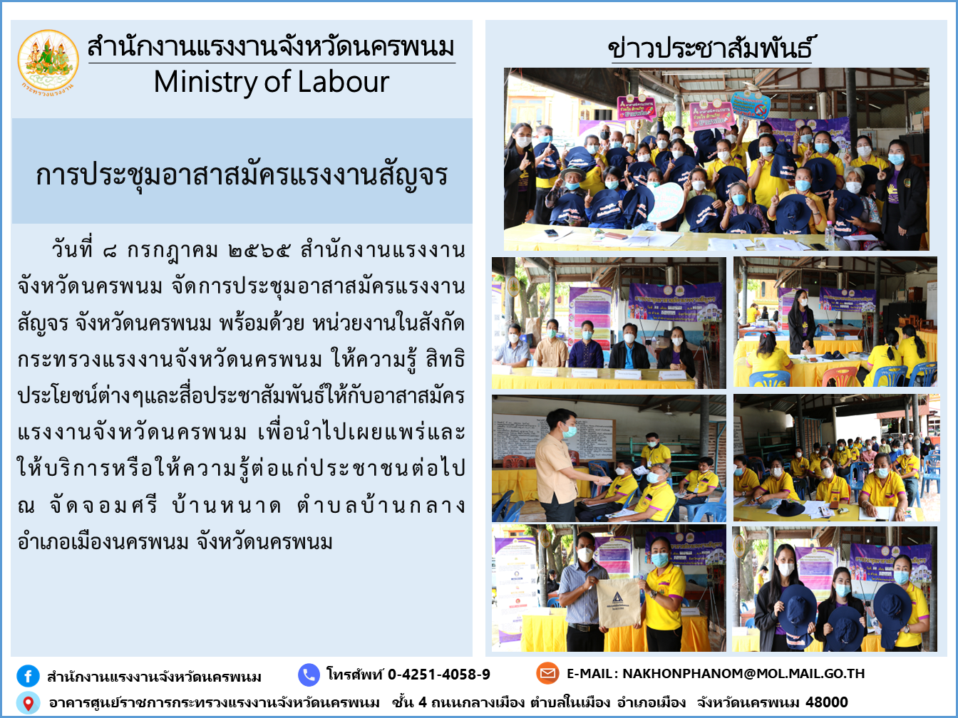 สำนักงานแรงงานจังหวัดนครพนม จัดการประชุมอาสาสมัครแรงงานสัญจร จังหวัดนครพนม