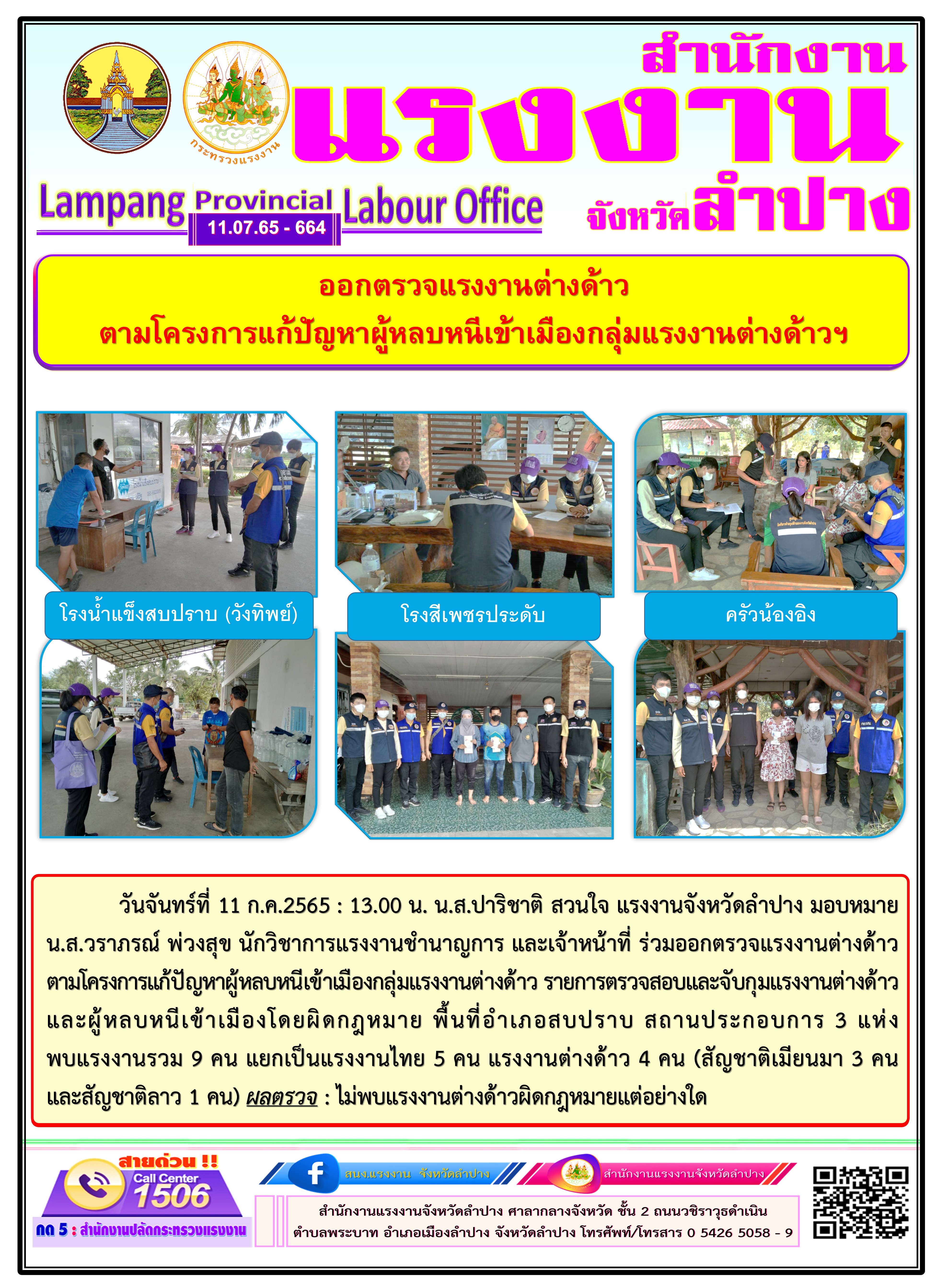 สรจ.ลำปาง ออกตรวจแรงงานต่างด้าว ตามโครงการแก้ปัญหาผู้หลบหนีเข้าเมืองกลุ่มแรงงานต่างด้าวฯ