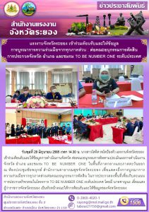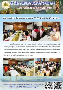 แรงงานจังหวัดระยอง เข้าร่วมต้อนรับและให้ข้อมูล การบูรณาการความร่วมมือจากทุกภาคส่วน : ต่อคณะอนุกรรมการตัดสิน การประกวดจังหวัด อำเภอ และชมรม TO BE NUMBER ONE ระดับประเทศ